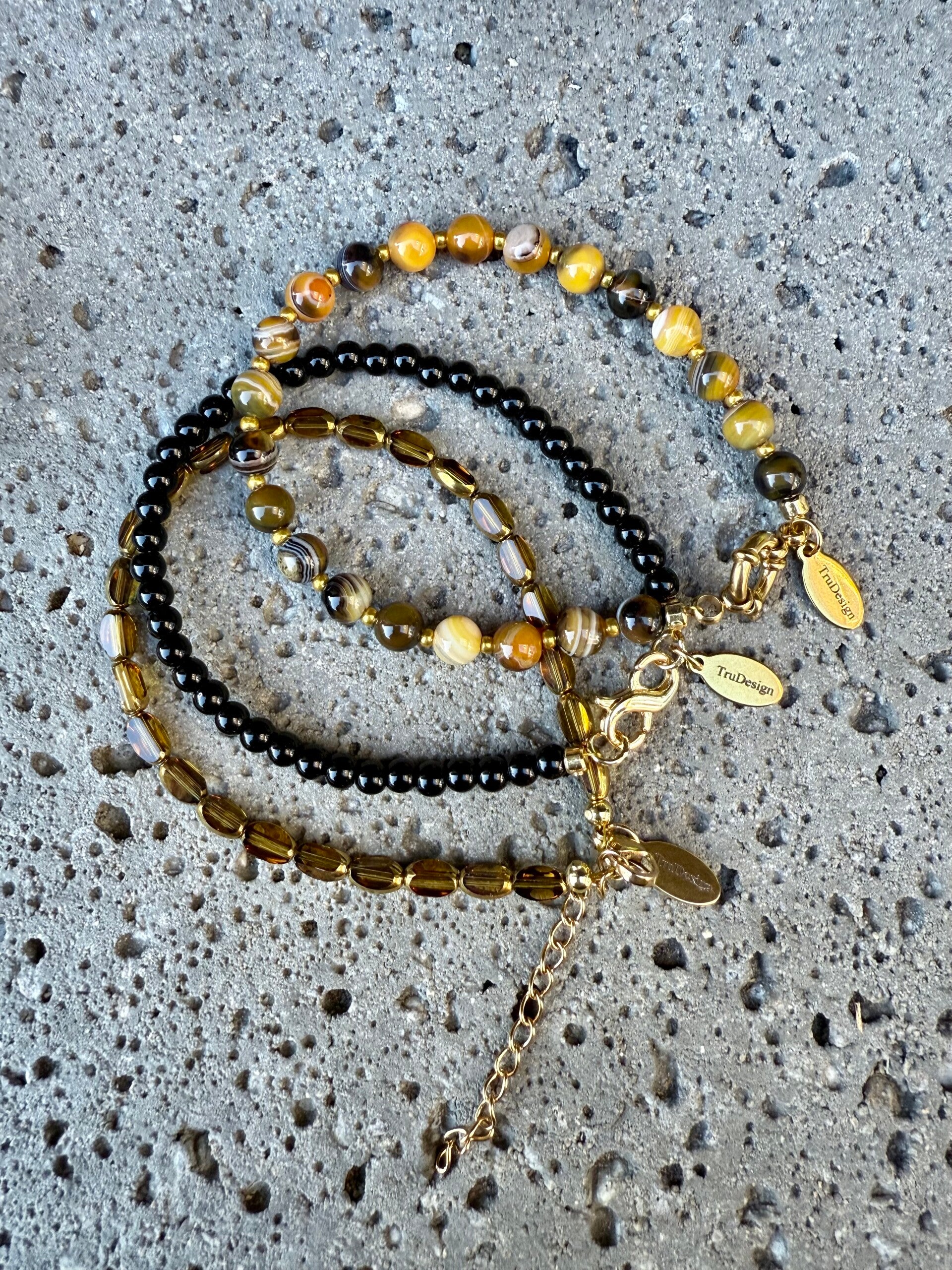 Gemaakt van glanzend zwarte 4 mm onyxstenen, zorgvuldig geregen het zorgvuldigheid en liefde.