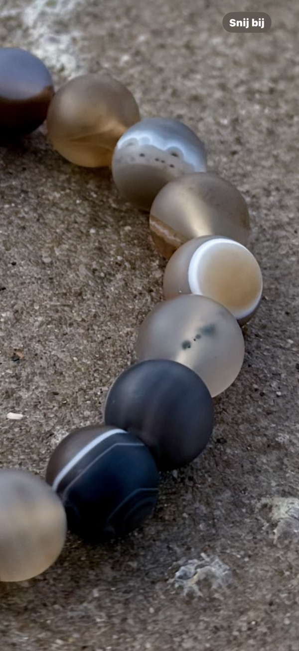 Stoer, rustig en toch opvallend. SIGN Bravo is gemaakt van 10 mm matte Botswana agaat – een natuursteen die bekendstaat om zijn unieke lijnen en zachte aardetinten. Geen enkele kraal is hetzelfde, waardoor elke armband zijn eigen karakter heeft.