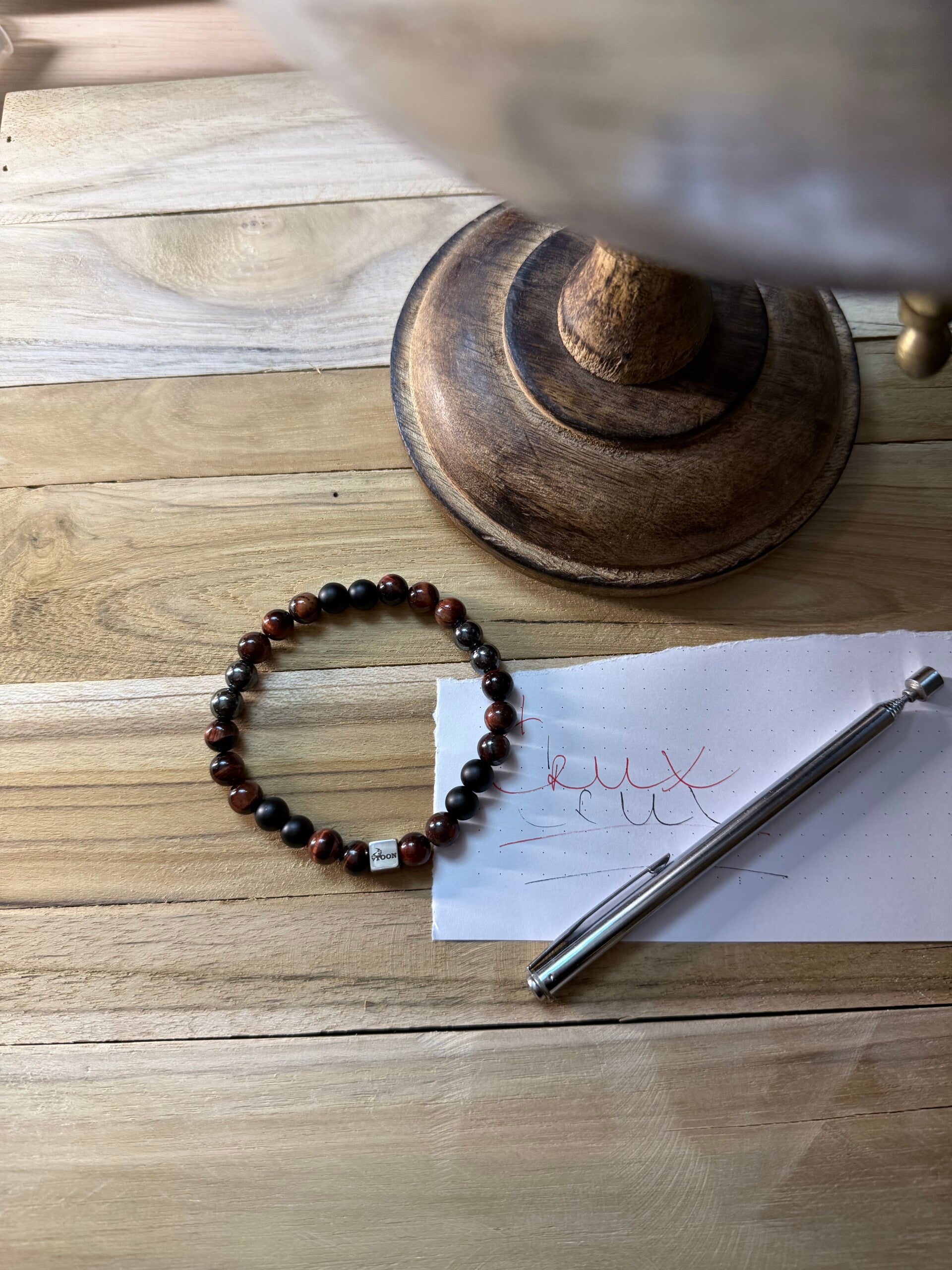 De diepe roodbruine gloed van tijgeroog verandert subtiel met het licht, waardoor elke armband zijn eigen karakter heeft.